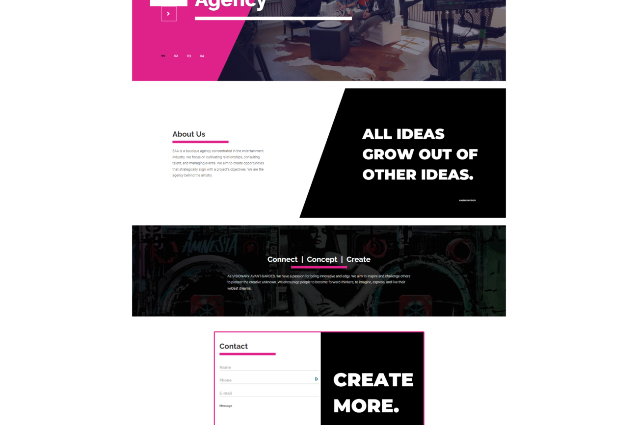 NEU Firm developed a simple yet effective website for Entertainment Architect, focusing on functionality and ease of navigation. The site included an index page to introduce the brand, a services page to outline offerings, and a contact page with clear call-to-action prompts for inquiries.